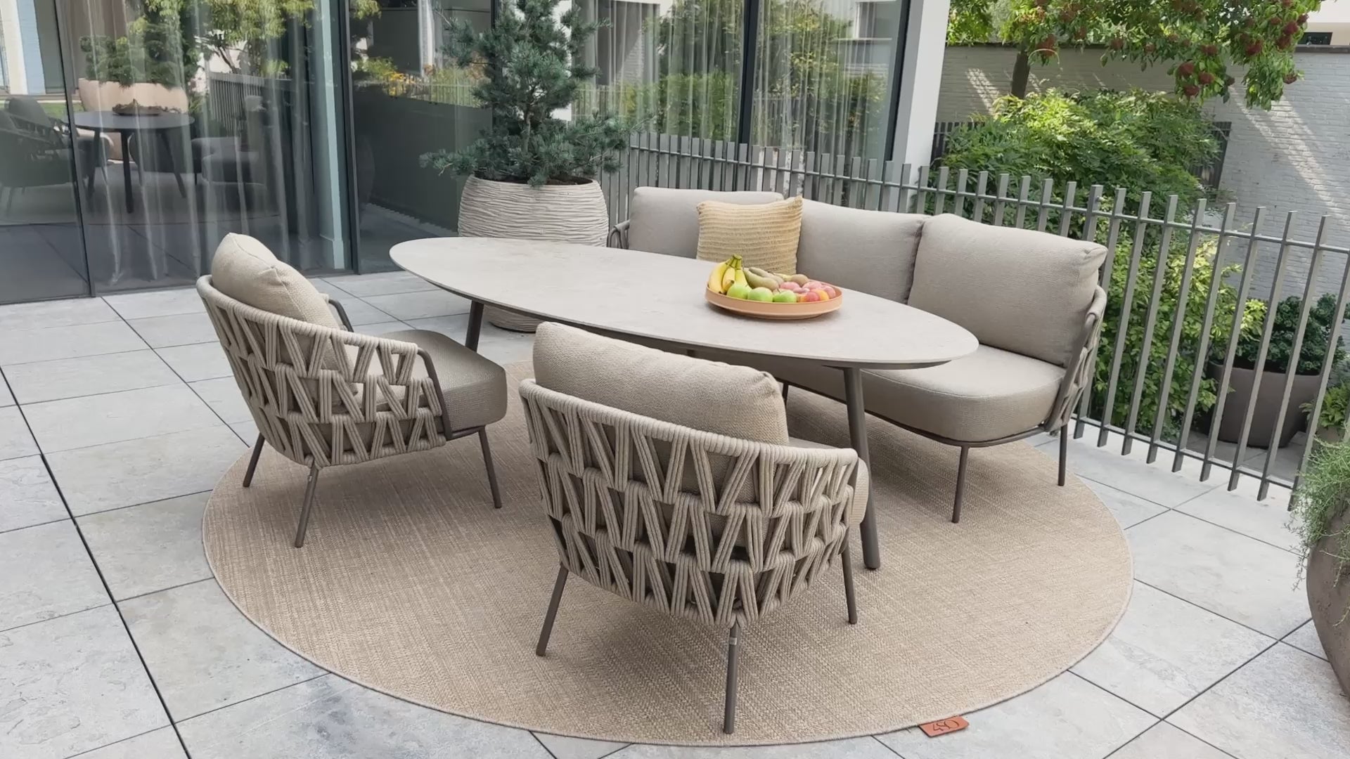 Tuinset Mallorca brengt ontspannen elegantie naar elke buitenruimte. De stoelen hebben een warme, natuurlijke uitstraling dankzij het subtiel geweven rope en het lichte, uitnodigende karakter van het ontwerp. De comfortabele kussens uitgevoerd in all-weather stof zorgen ervoor dat je moeiteloos urenlang kunt natafelen, borrelen of gewoon genieten van het buitenleven. In combinatie met de bijpassende teak tafel ontstaat een harmonieus geheel dat zowel modern als sfeervol aanvoelt. Mallorca is een tuinset die rust, comfort en stijl moeiteloos samenbrengt precies wat je zoekt voor een gezellige en luxe tuinsetting.